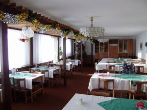 V pensionu je jídelna, klubovna a bar, stolní fotbal, ping-pong, i ruské kuželky.