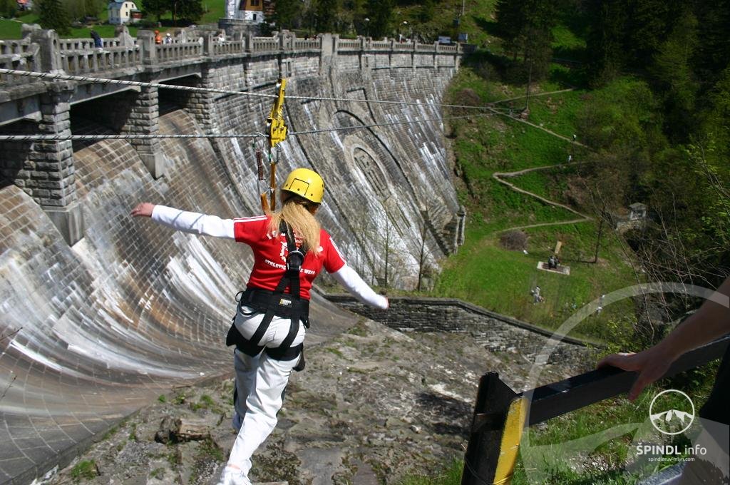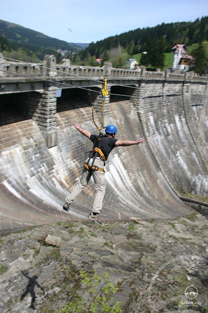 ZIP LINE je 120 metrů dlouhá jízda na laně, které je zavěšeno ve výšce 25 metrů podél přehradní hráze Labská.