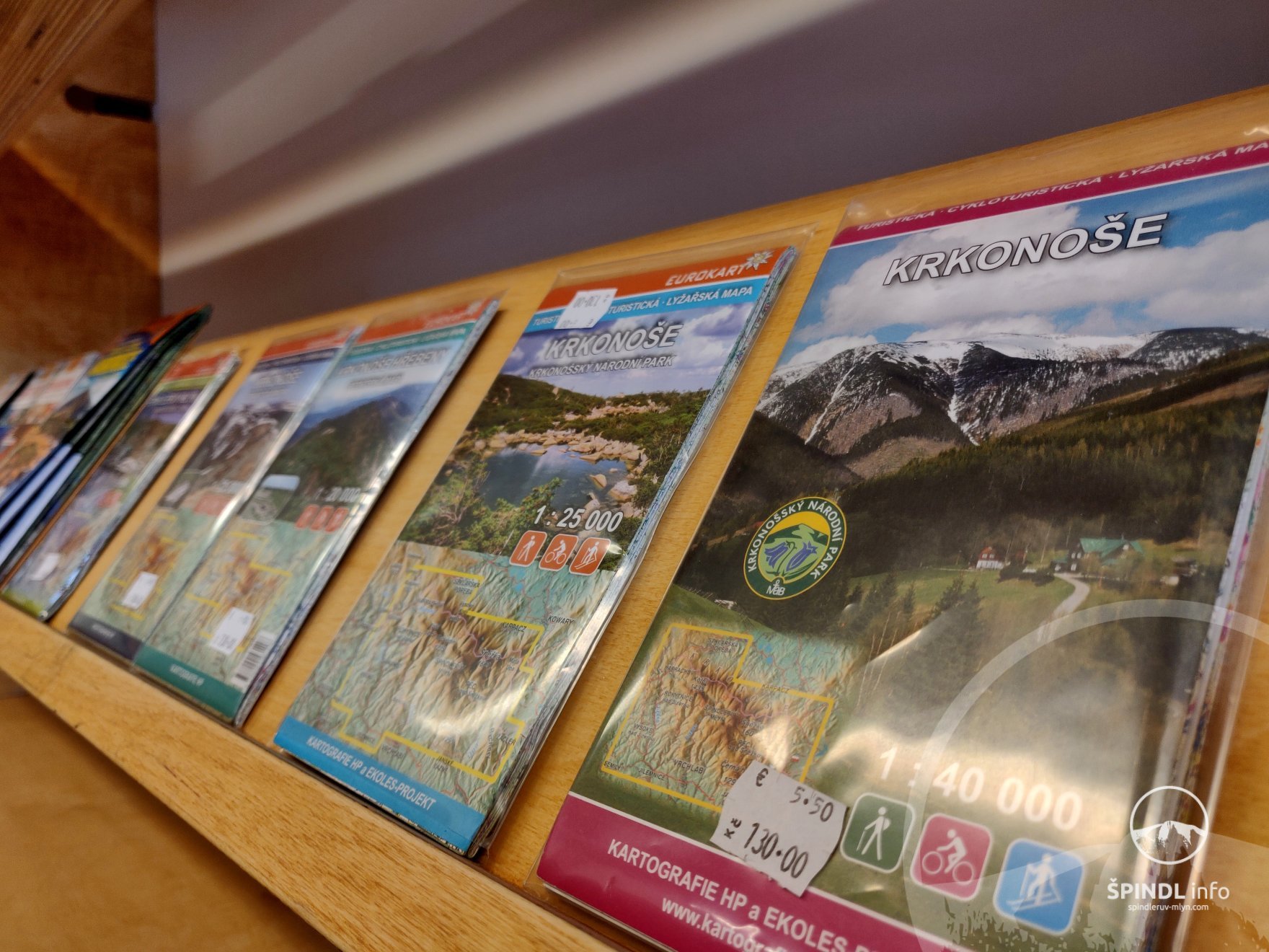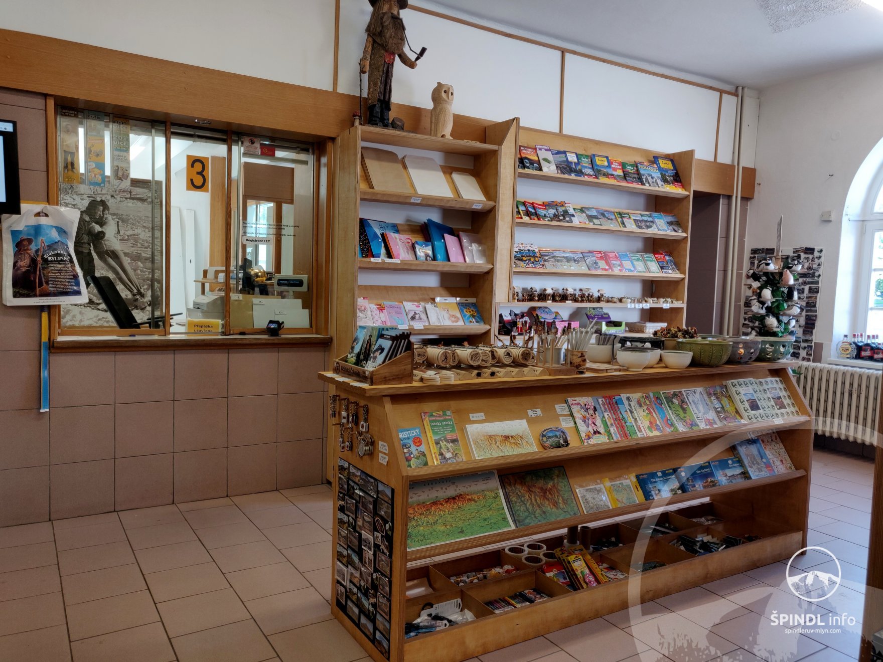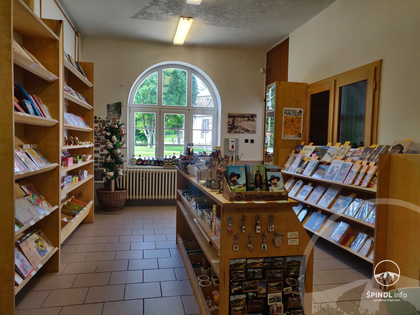 Es bietet ein großes Sortiment an Souvenirs, Souvenirs und kleinen Verkäufen zum Thema Špindlerův Mlýn und das Riesengebirge. Liebhaber von Büchern über das Riesengebirge, Sammler von Touristenkarten, Touristenbriefmarken und Sammler von Gedenkmünzen werden sich amüsieren. Riesengebirgs-Met, Postkarten von Špindlerův Mlýn, Riesengebirgsbier, Riesengebirgswaffeln oder Schokolade werden alle glücklich machen.