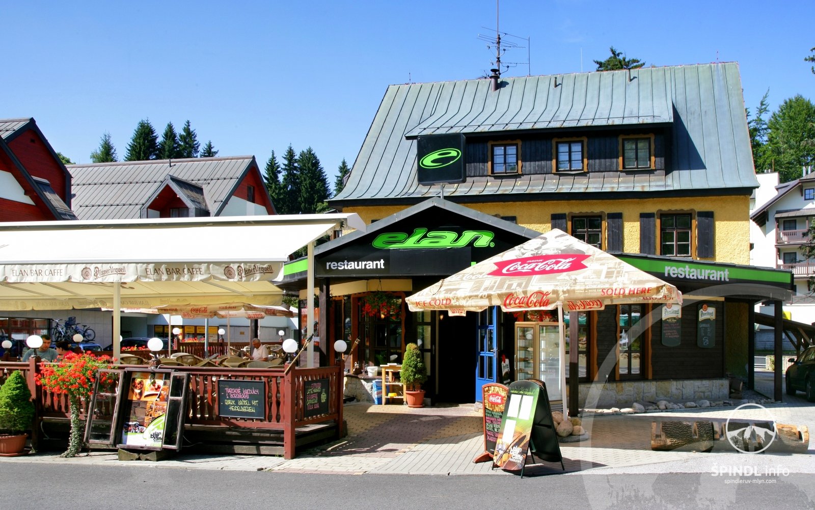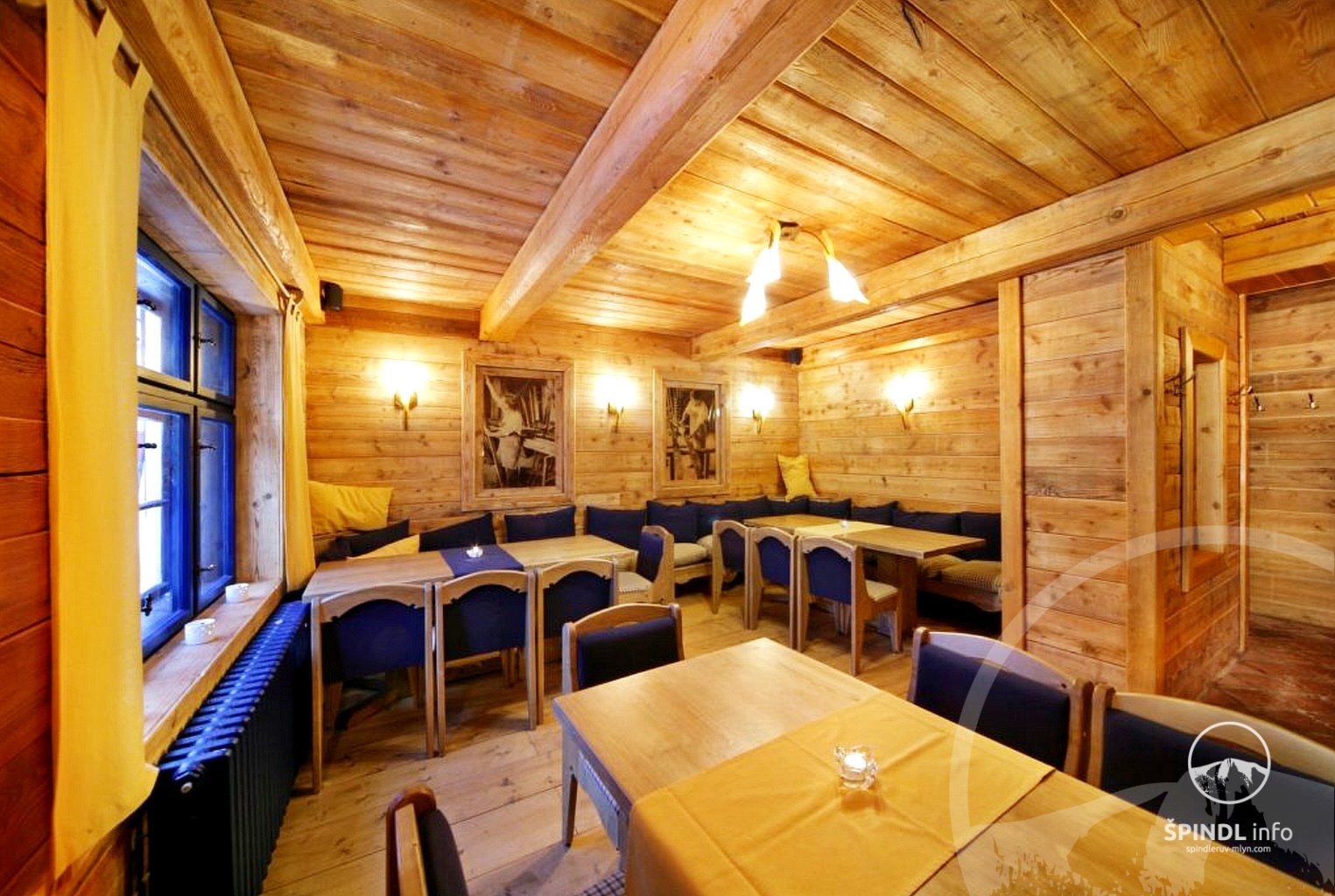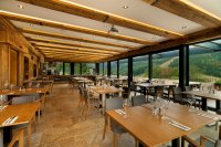 Das Hotel verfügt über ein Restaurant mit Bar und Kinderecke, eine Winter- und Sommerterrasse mit Blick auf Svatý Petr. Das Frühstück wird in Form eines Buffets serviert. Die Gäste können aus einer großen Auswahl an tschechischen und internationalen Gerichten wählen.