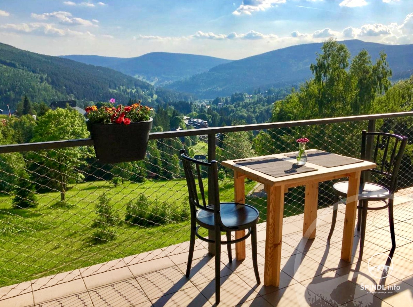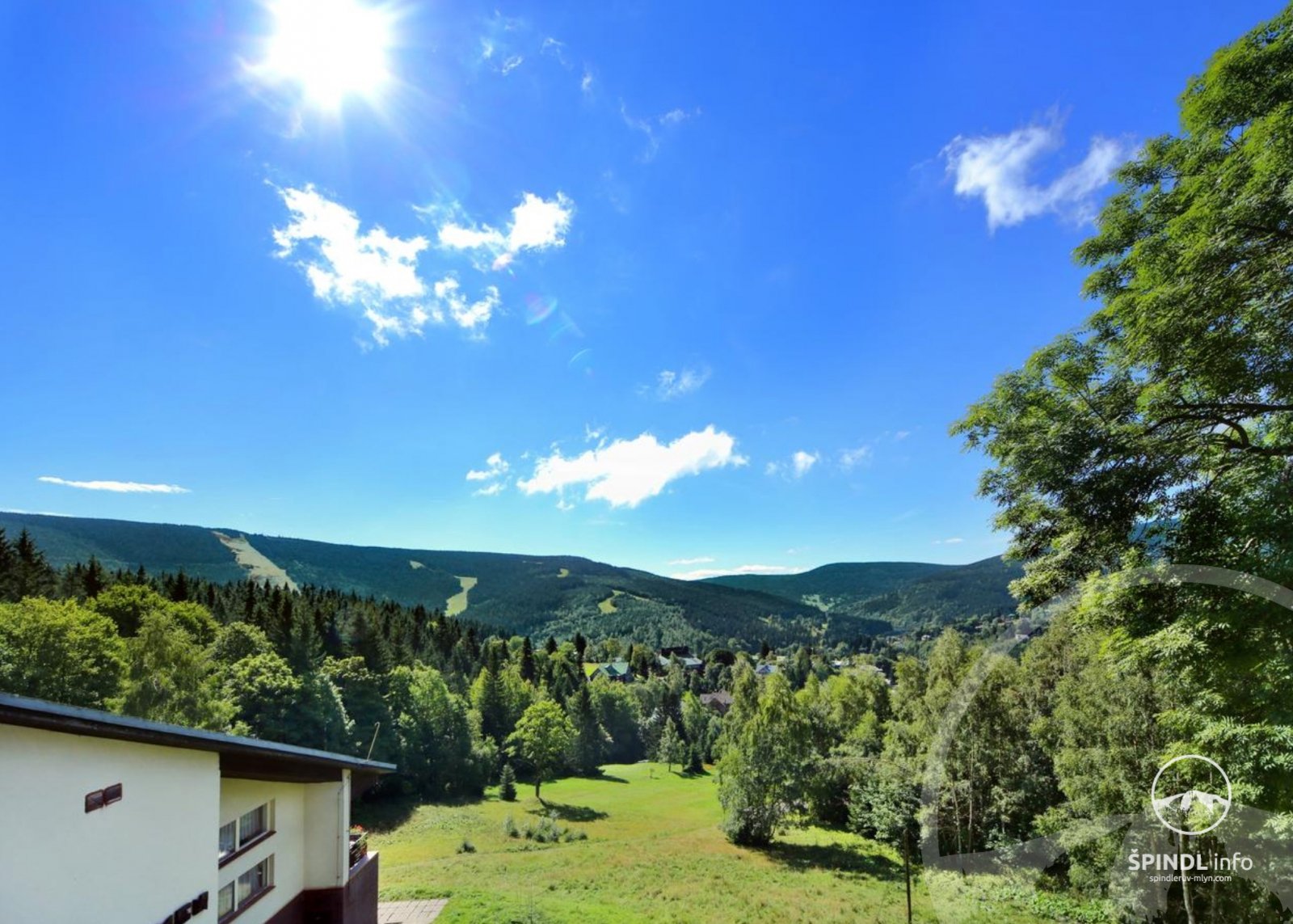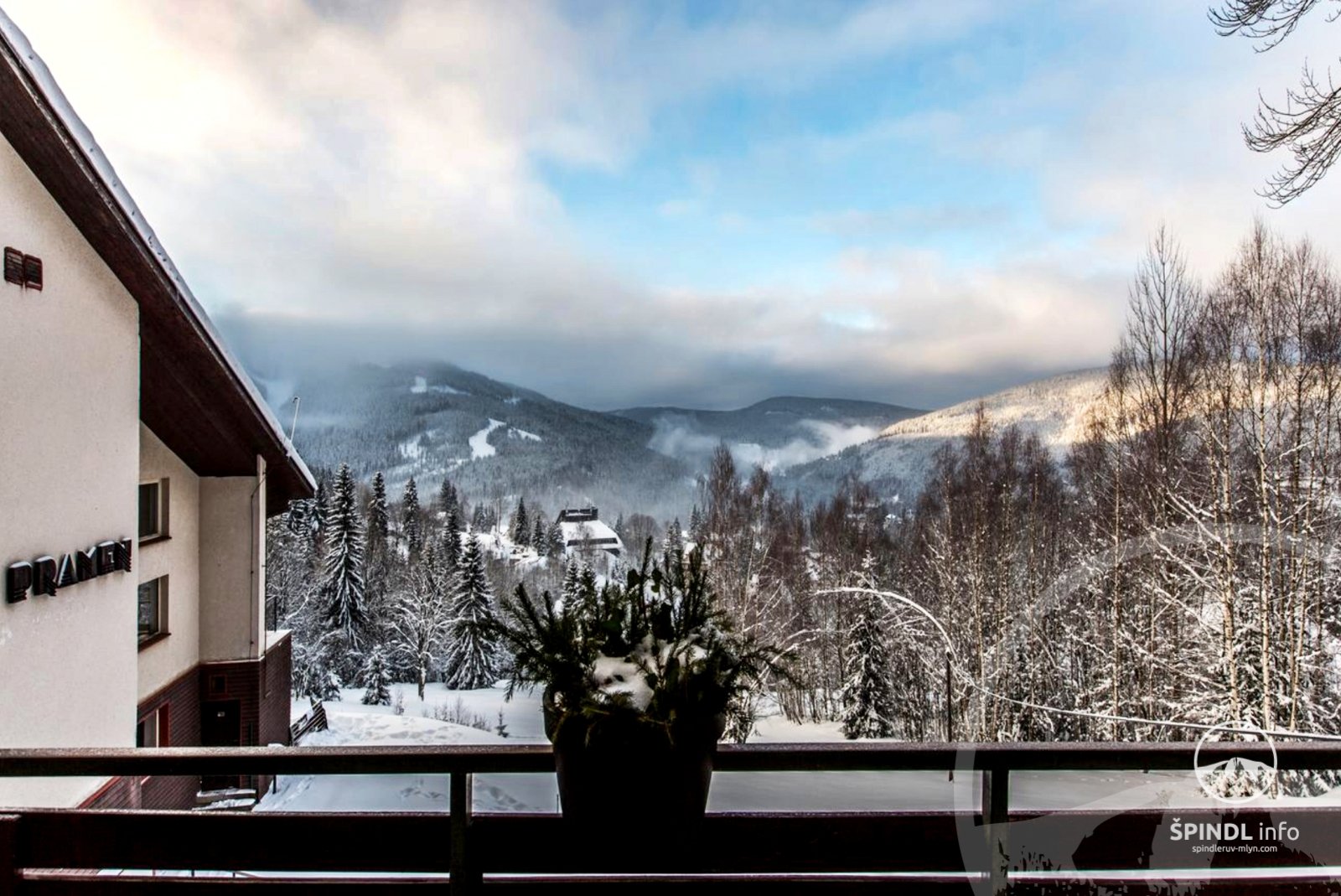 Hotel Horní Pramen usytuowany jest na południowym zboczu z widokiem na centrum Szpindlerowego Młyna. Hotel znajduje się około 850 metrów od centrum Szpindlerowego Młyna i 15 minut spacerem od hotelu. Stoki narciarskie Svatý Petr i Medvědín znajdują się w odległości jazdy samochodem od hotelu, latem można dojechać rowerem lub pieszo.