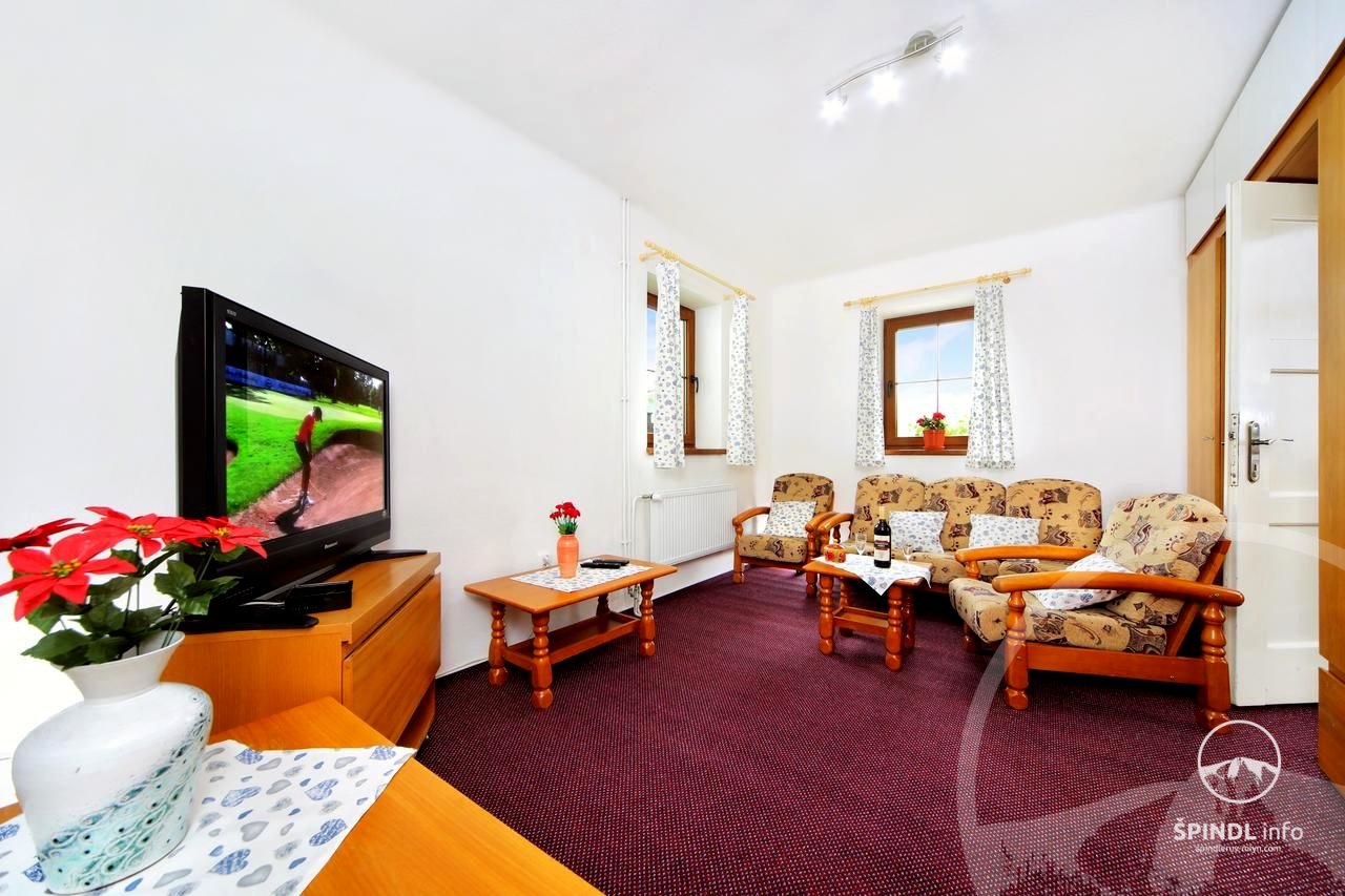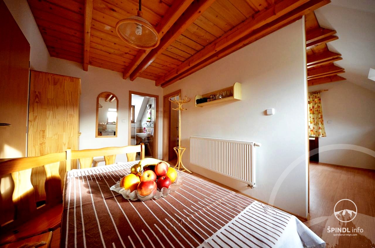 Apartamenty U Kobrů znajdują się w spokojnej części Szpindlerowego Młyna na Okružní, około 10 minut od centrum. Zimą pensjonat jest łatwo dostępny, ale czasami nie można obejść się bez łańcuchów. Parking dla gości znajduje się przed domem.
