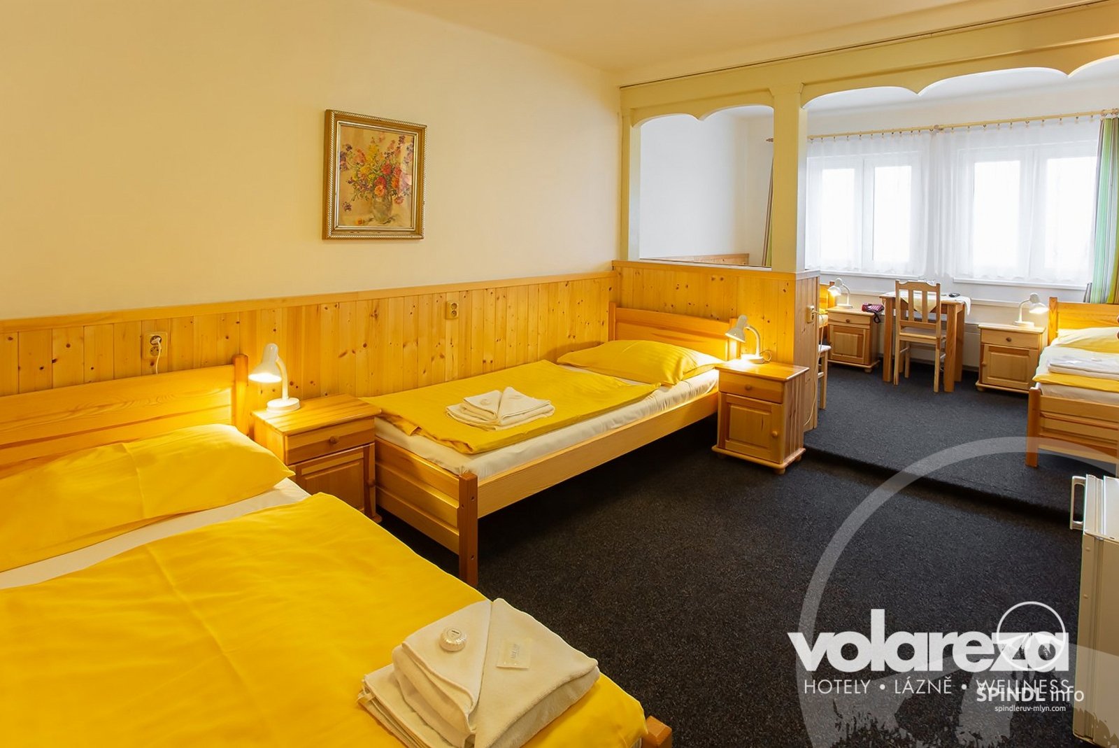 Oferuje pojemność 98 łóżek w 40 pokojach, które są zawsze wyposażone w stylowe drewniane meble, telewizję satelitarną i telefon. Ten klasyczny karkonoski domek oferuje zakwaterowanie w pokojach kilku kategorii: pokoje dwuosobowe z dostawkami z łazienką z prysznicem dla każdego pokoju oraz pokoje dwu- i czteroosobowe, w których łazienka i prysznic są wspólne na korytarzach.